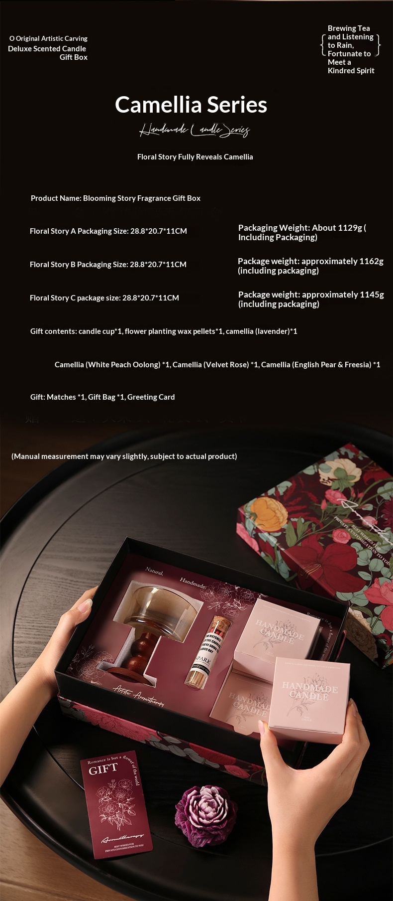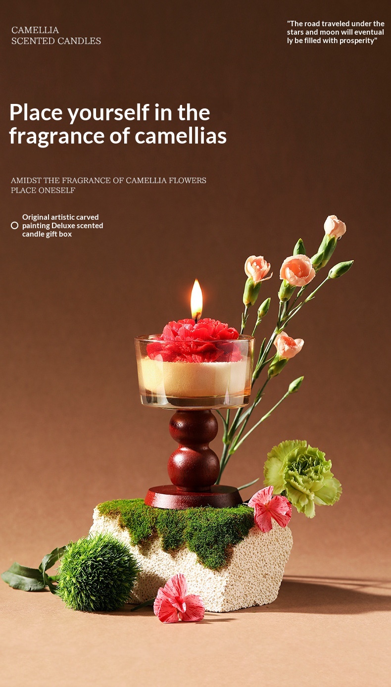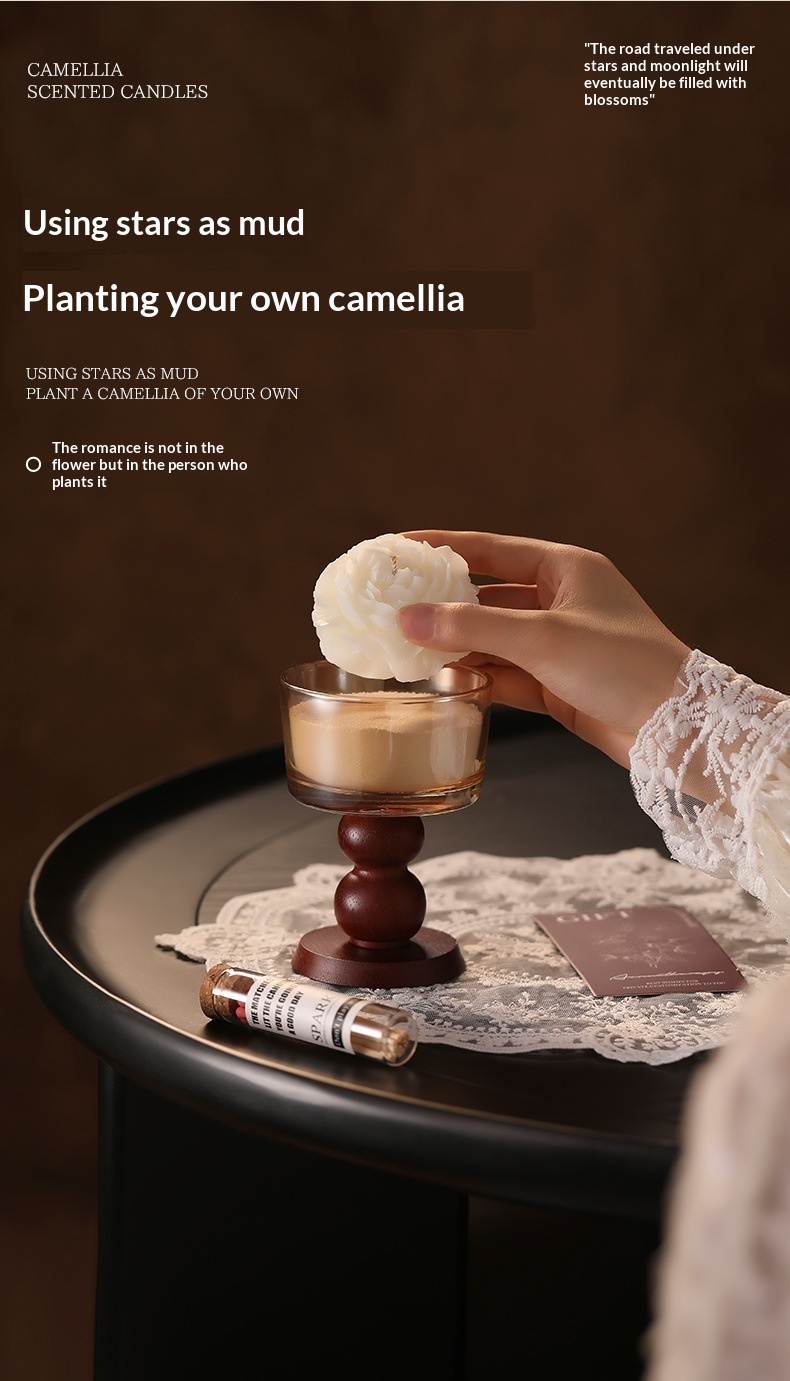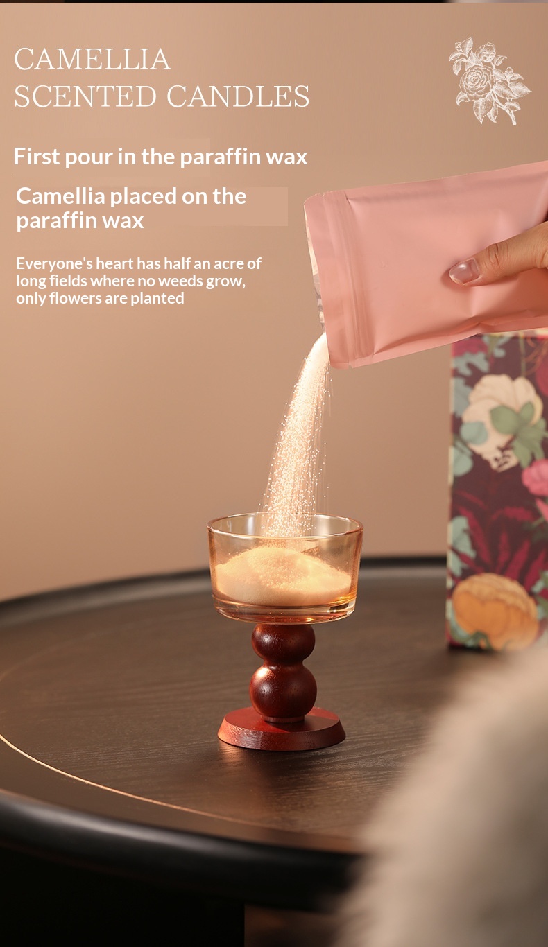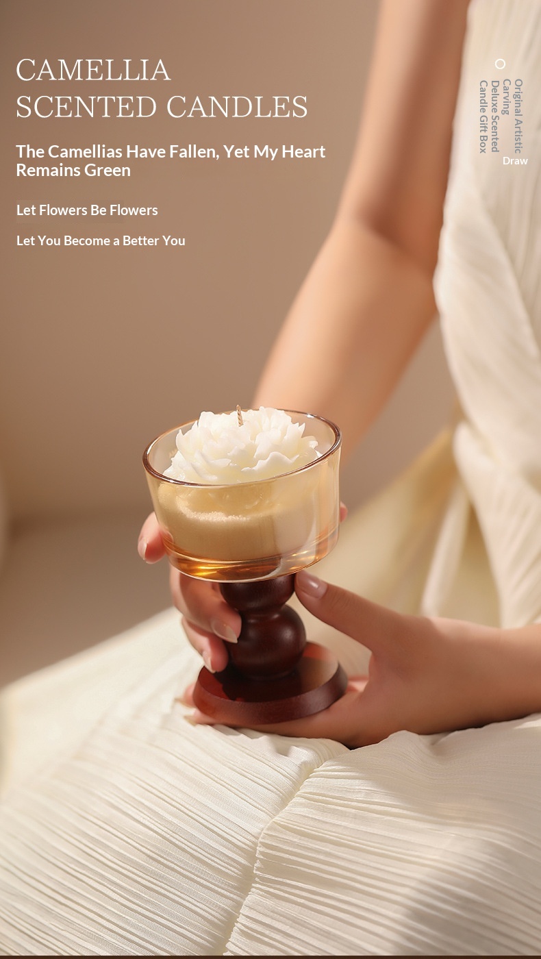 Product information: Material: Soybean blend wax Dimensions: Brown transparent stem glass + sand wax + 4 camellia flowers; bow-tie stem glass + sand wax + 4 camellia flowers; exquisite ceramic stem glass + sand wax + 4 camellia flowers Craftsmanship: Hand-painted, handmade, poured, semi-handmade and semi-mechanical Shape: Cup-shaped