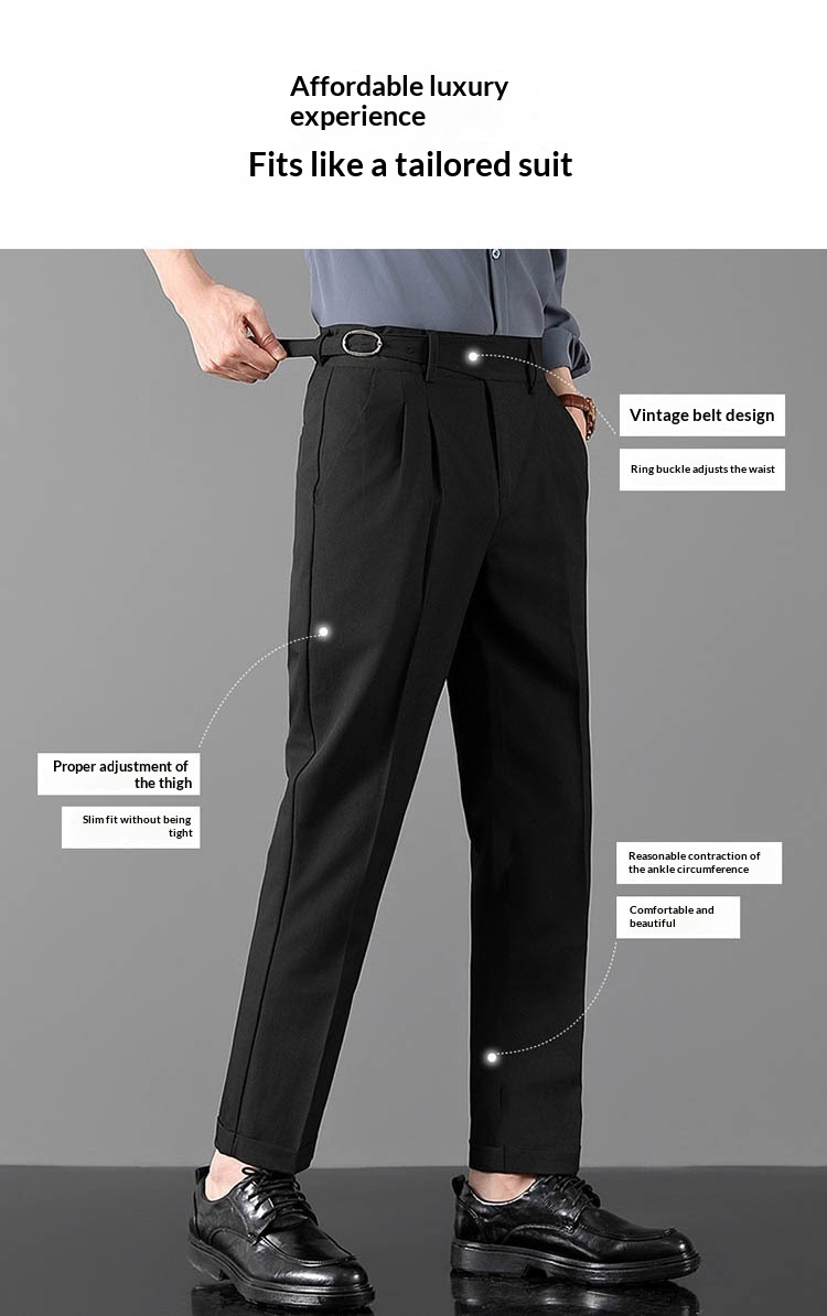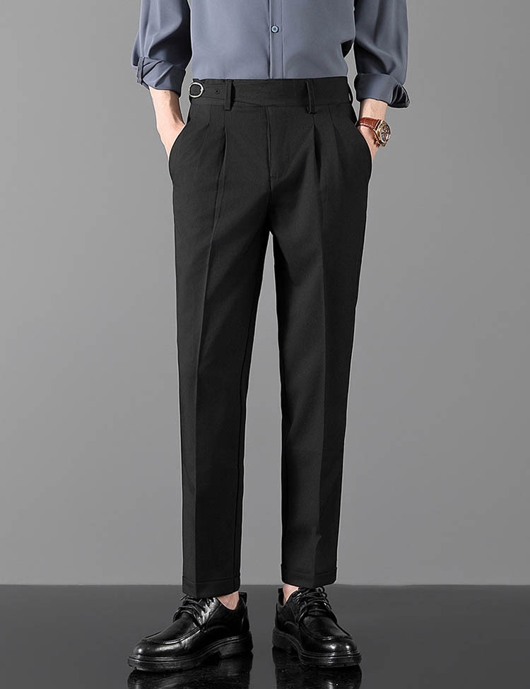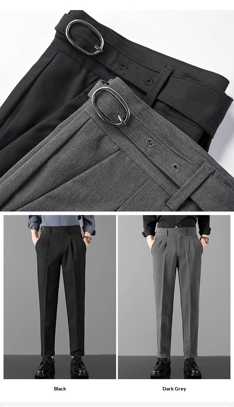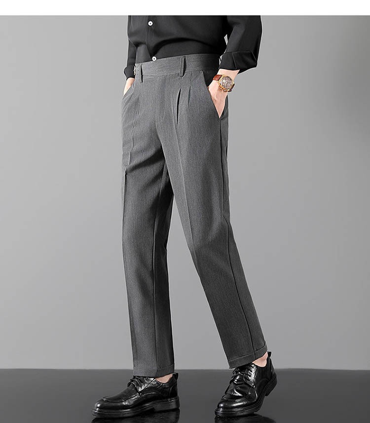 Mens Slim-Fit Straight-Leg Trousers In British Style